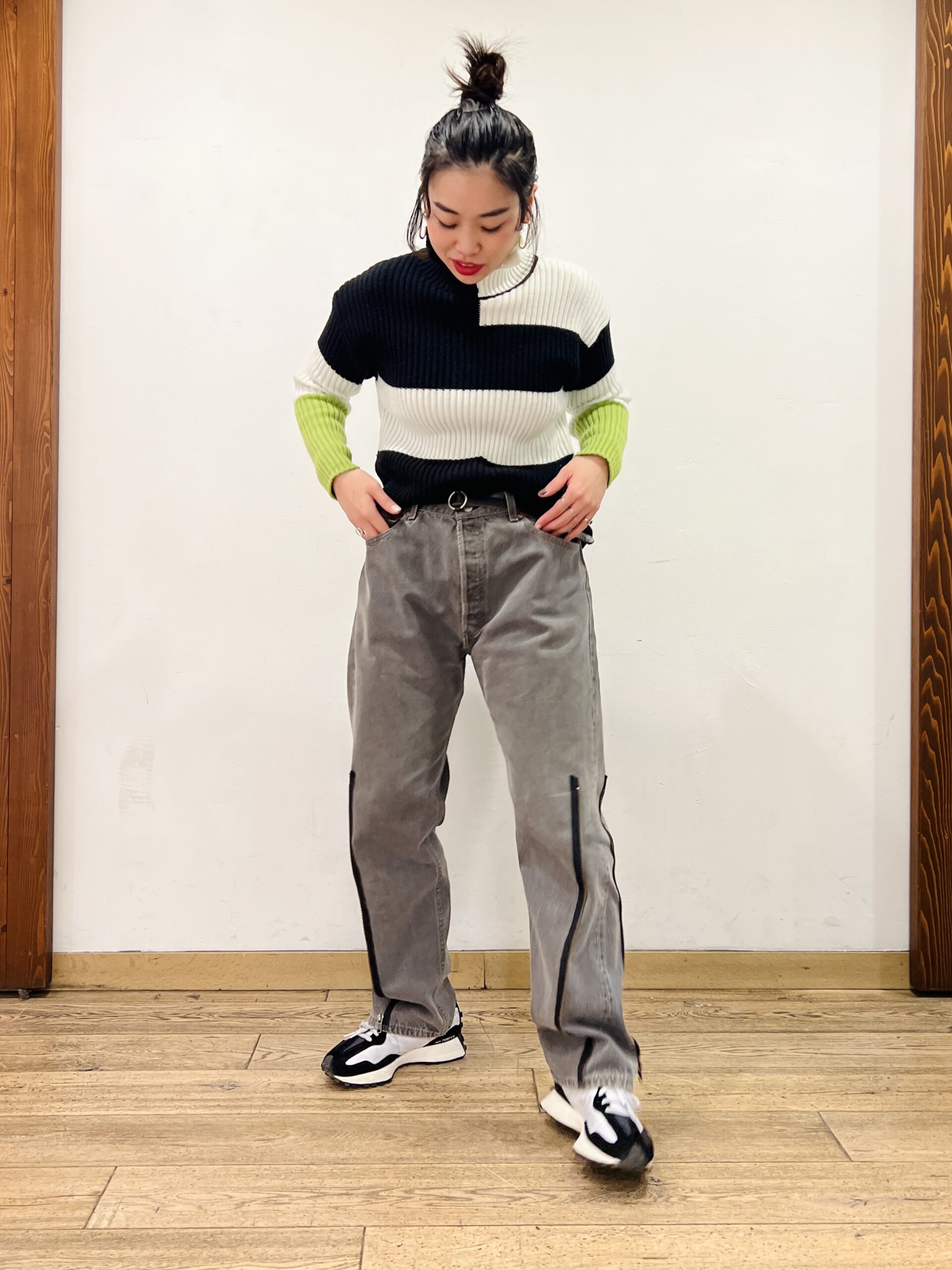 セレクトショップで購入した配色も形も可愛いハイネックのニットに、