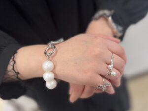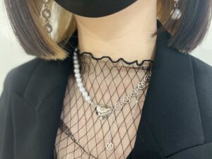 アクセサリーはシルバー×パールの組み合わせで統一しました!