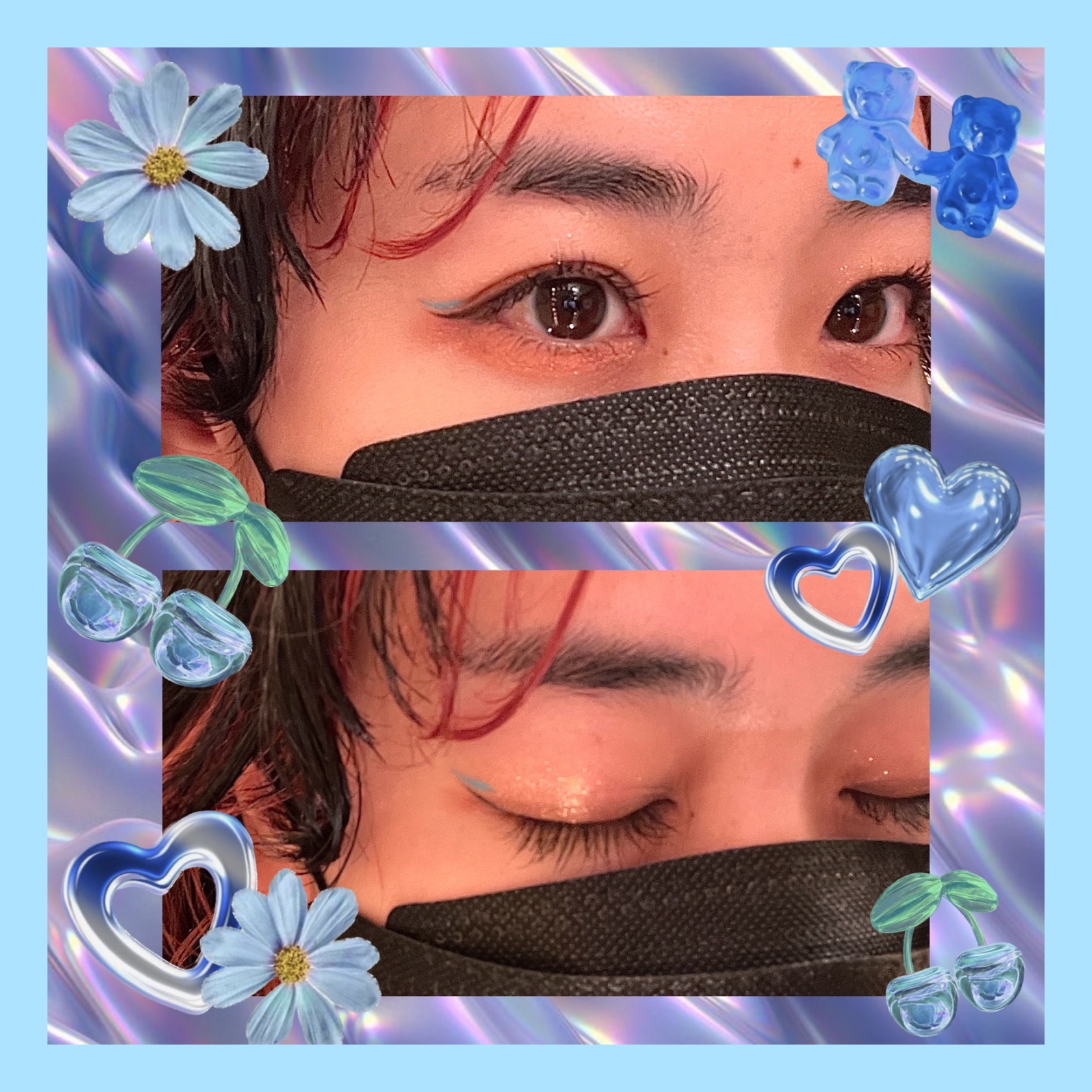 この日も刺繍カラーに合わせてブルーのアイラインを引いてみました!💙