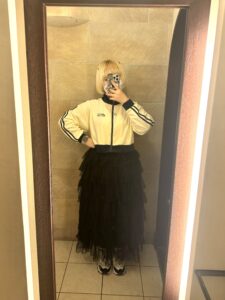 スカートはふわふわエレガントで甘辛にしてみました♡