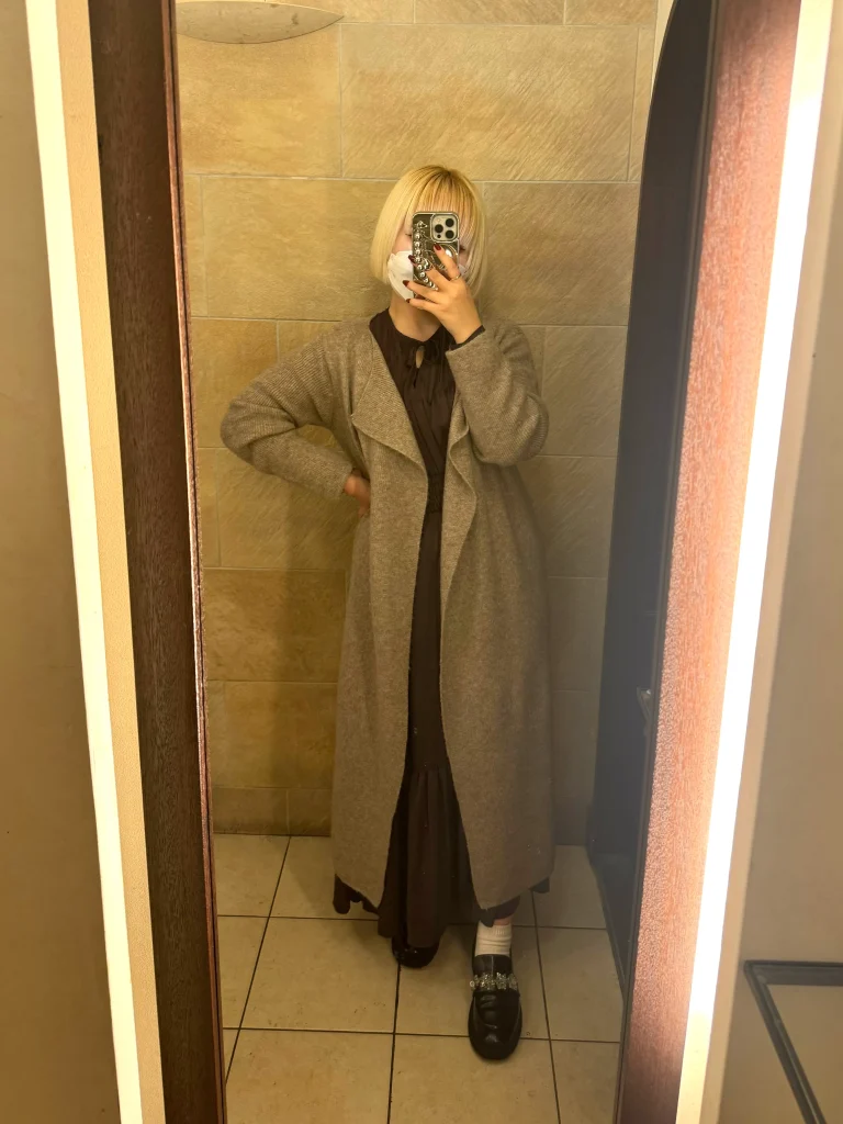 長めのカーディガンを合わせました。