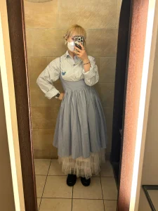 水色と蝶々をテーマにしたコーデ。