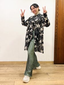 一目惚れしたシャツをメインに、差し色にグリーンを合わせました🐸🍀