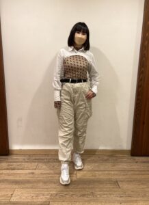 前回は黒でしたが、今回はベージュ!なのでズボンも合わせて、ベージュにしました〜!