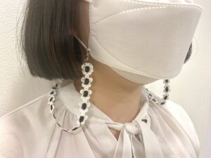 マスクストラップをつける時は、首回りがうるさくならないように、