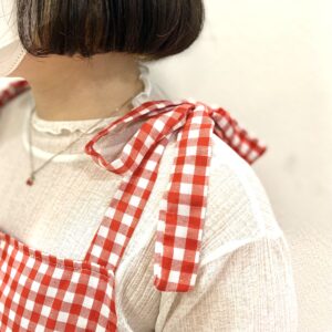肩紐は自分で結ぶタイプなので、好きな長さに調節できます◎