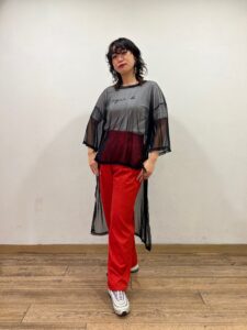 ピンク、グリーン、オレンジ、、、と続いて大好きなカラーパンツを主役に