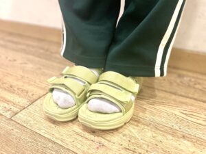靴まで緑に‼️これは最近、母が買いたてホヤホヤのサンダルなのですが、