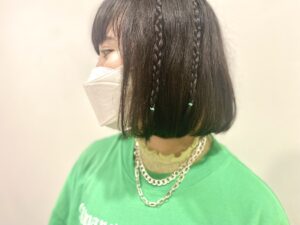 イメージしたのはドレッド!ちゃんとヘアゴムも緑にしていますよ〜〜