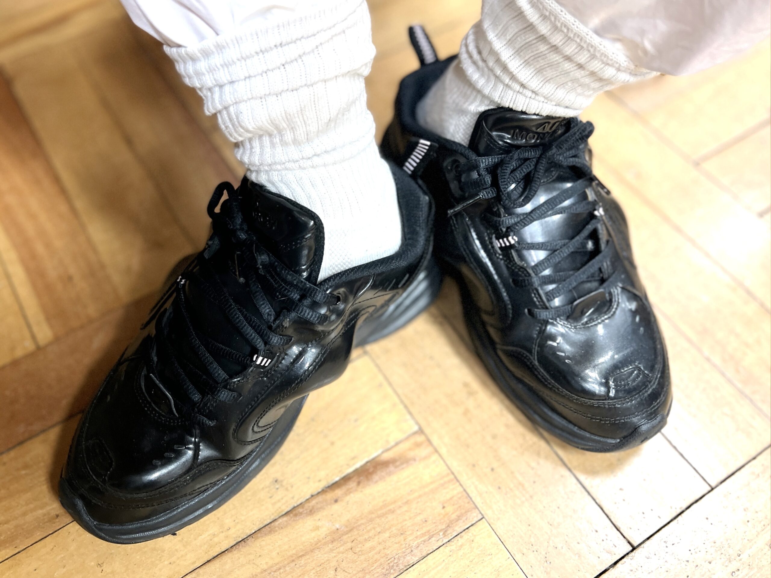 スニーカーはMartine Rose × Nike Air Monaech 4 です。