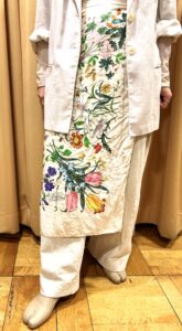 柄を見せたかったのと大判だったので腰回りに結ぶスタイルにしました。