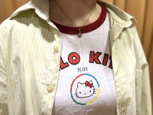 キティちゃんのリボンの赤とTシャツの赤のラインがあっていて、