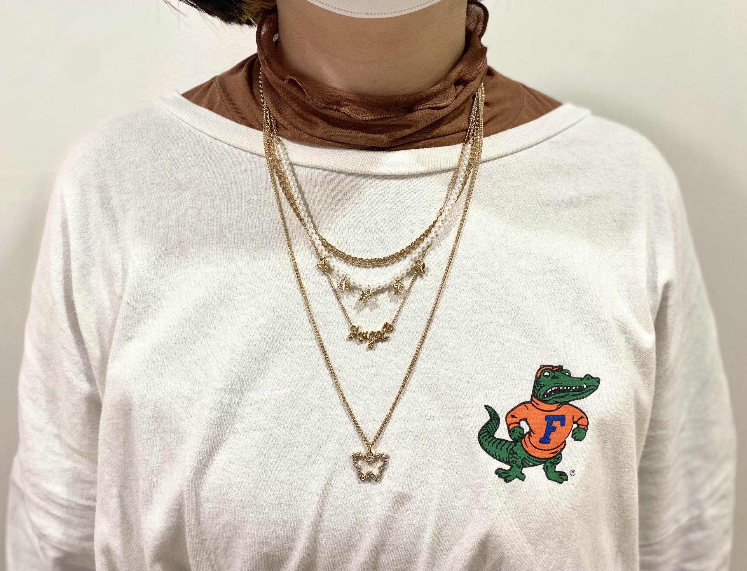 シンプルで可愛いTシャツはこのワニさんが可愛いですよね!洋服には「F」…意味は分かりますよね⁉️