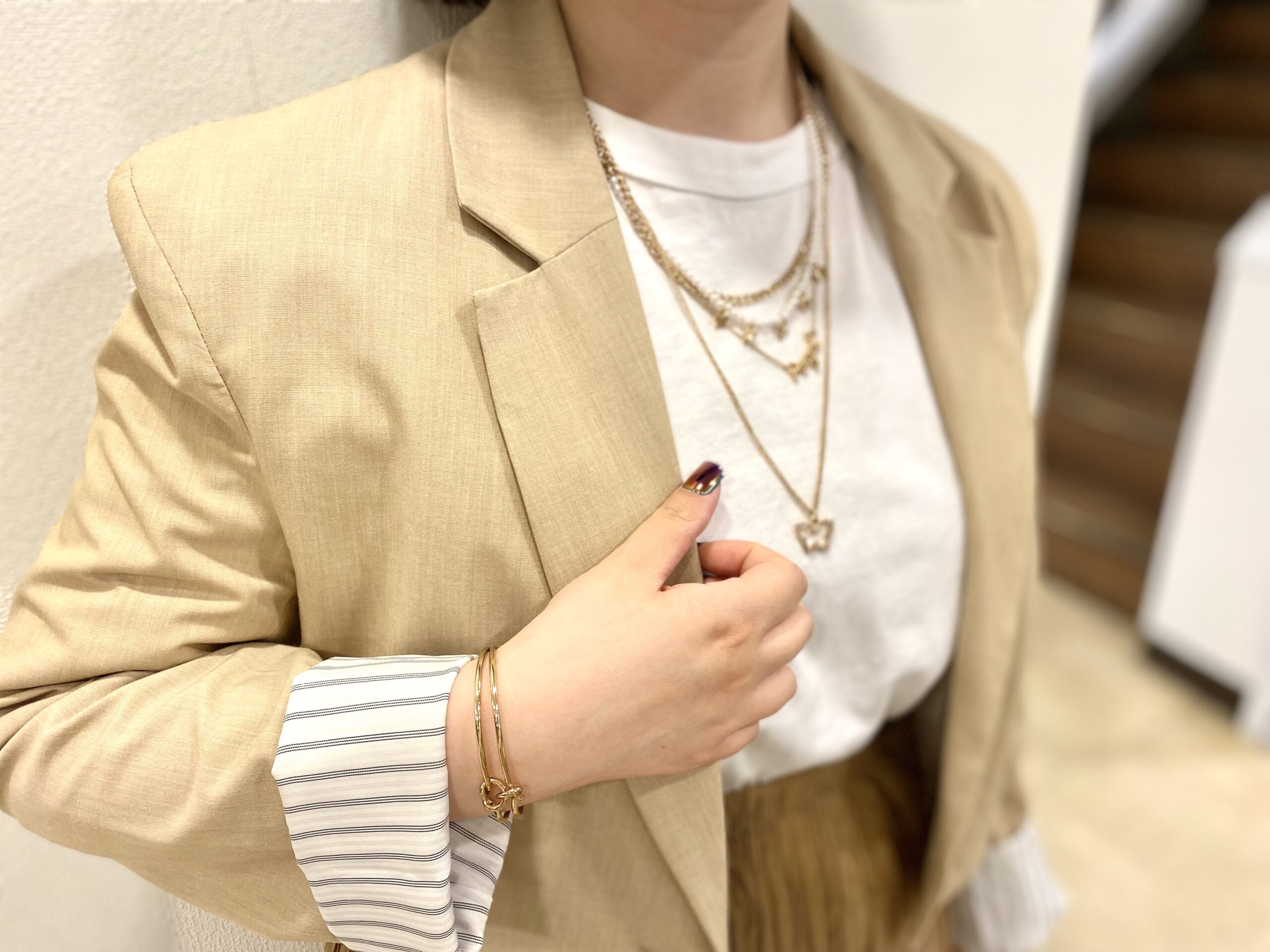 アクセサリーはゴールドで揃えました〜
