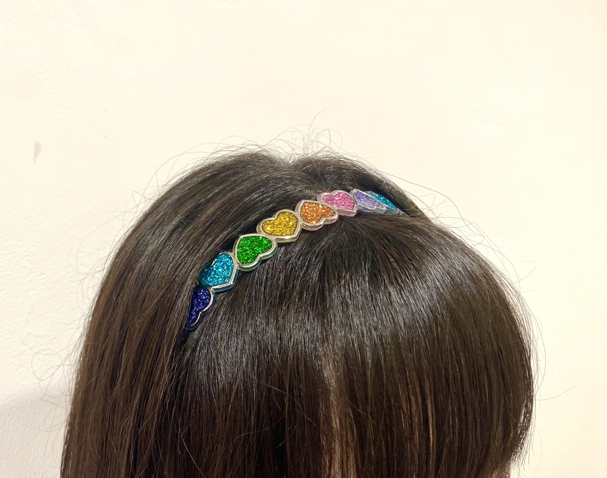 コーデに色がなかったので、ヘアアクセはカラフルに💙💚💛🧡❤️💜