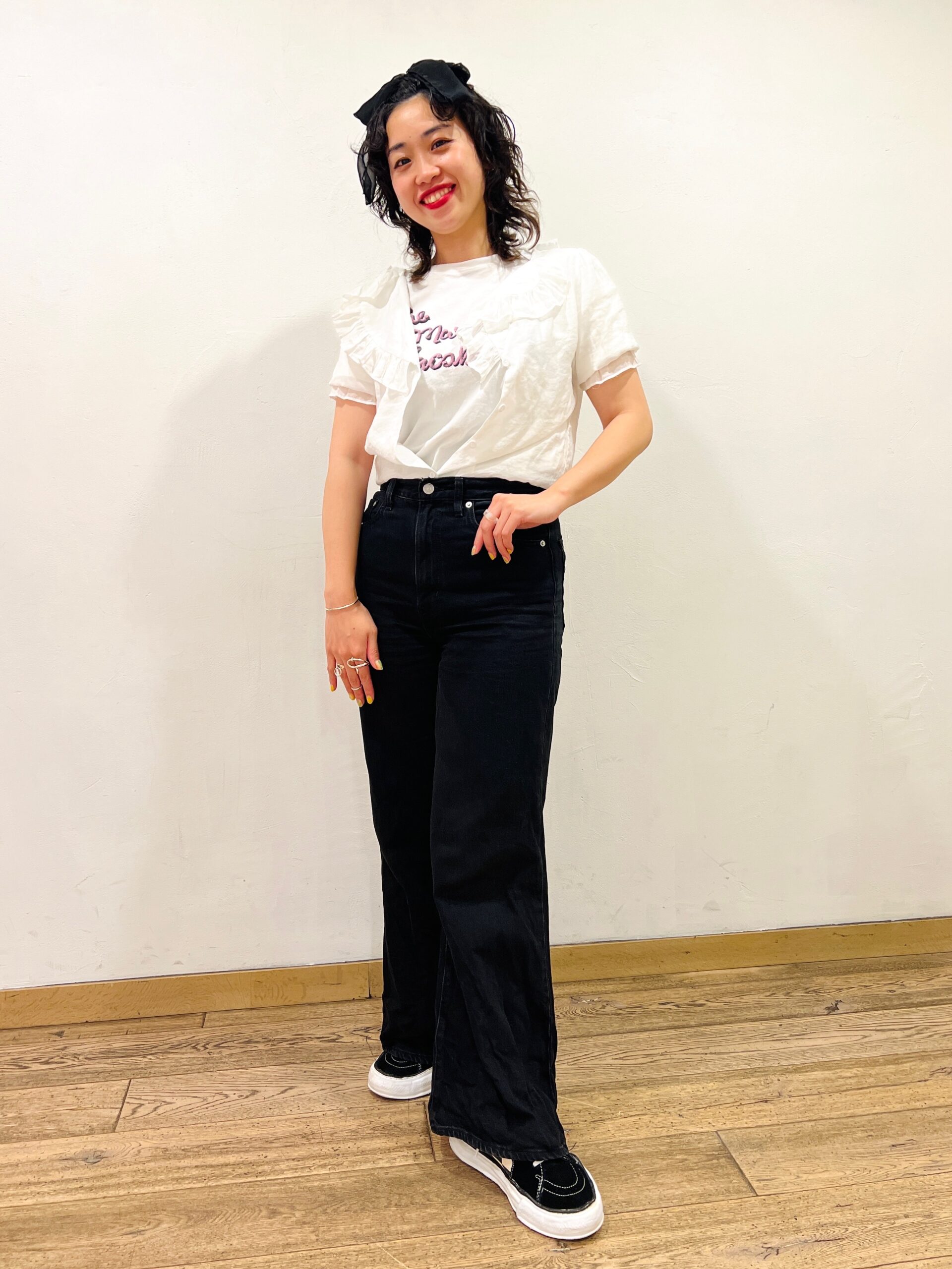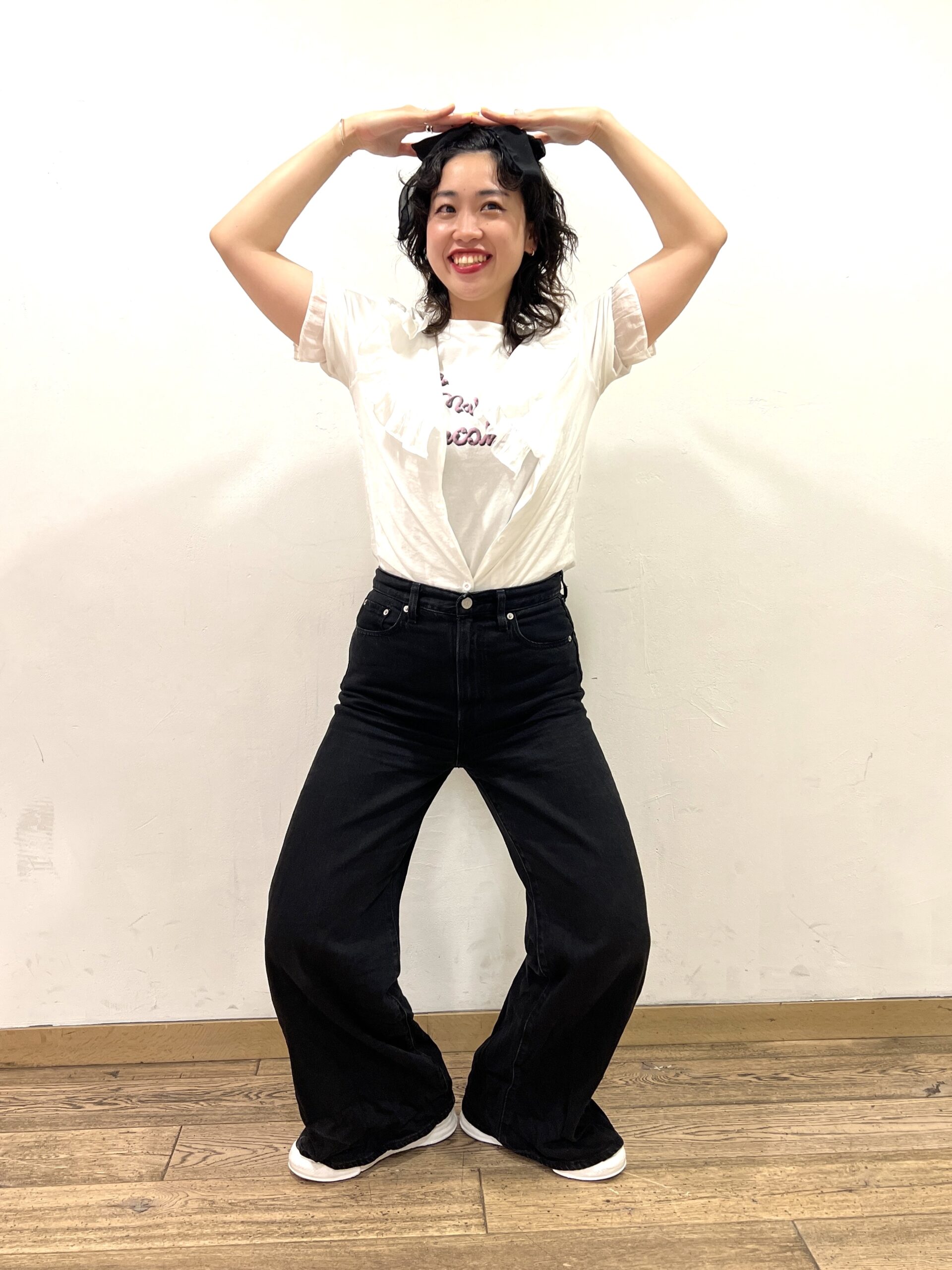 あえてごつめのスニーカーにすることで、可愛過ぎないよう意識しました。