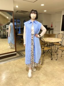 鮮やかな青のロングシャツでさらに爽やかな雰囲気にしてみました☀️💙