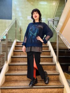 がっつり個性派な格好をしたかった今日は、肌寒かったのでかぎ編みニットチャンス到来!✊✨