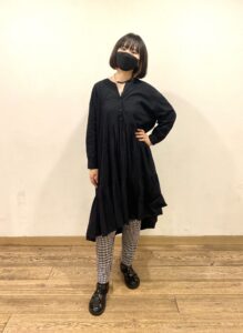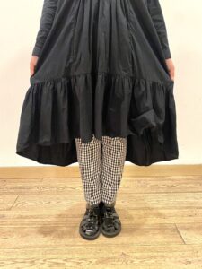 真っ黒ワンピにギンガムチェックのパンツ〜〜というシンプルなコーデに🖤🎶