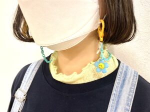ミントグリーンのチェーンとお花が可愛いデザインで