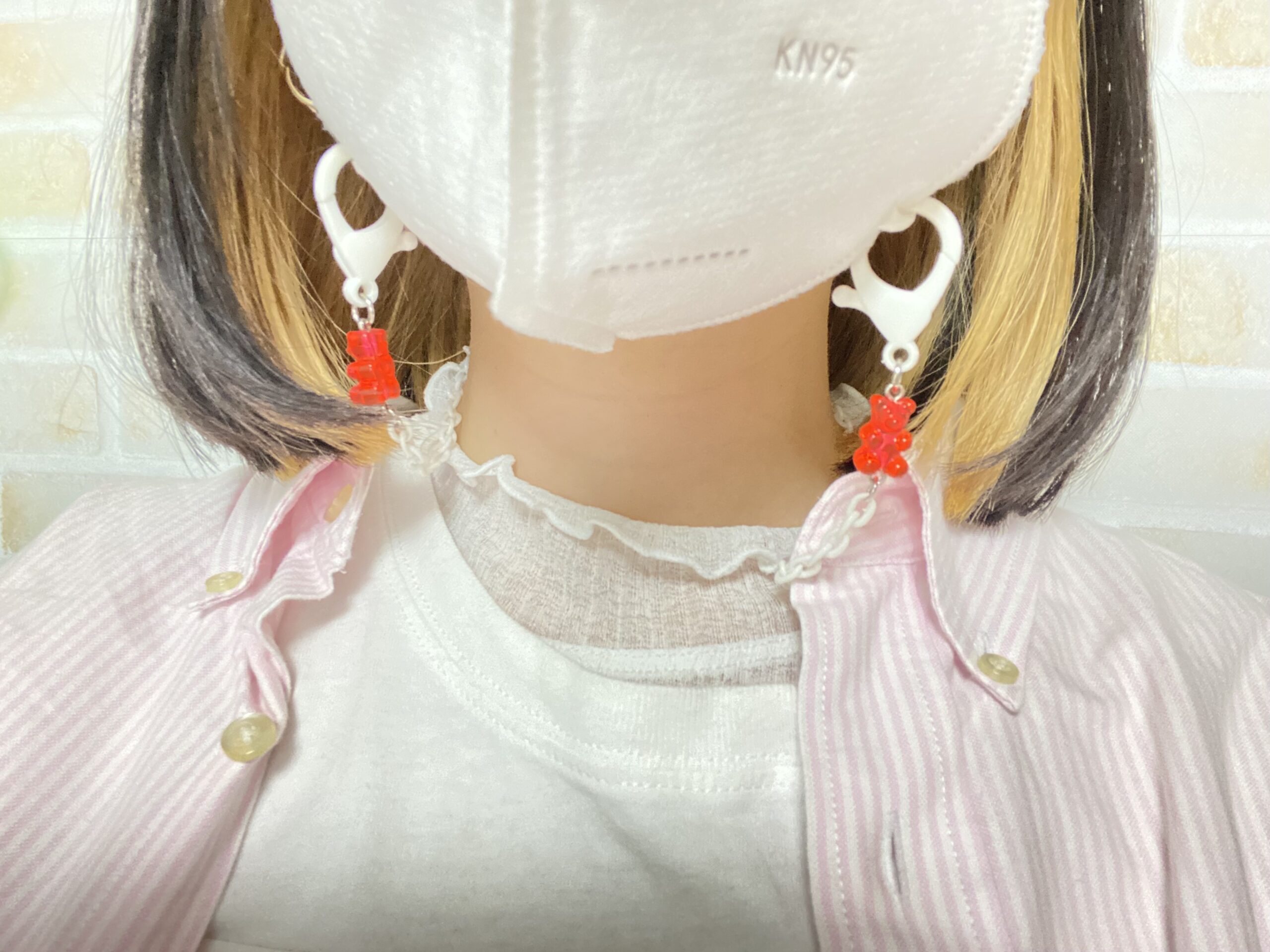 マスクストラップをつけました。揺れるくまちゃんがかわいいので気に入っています🌟
